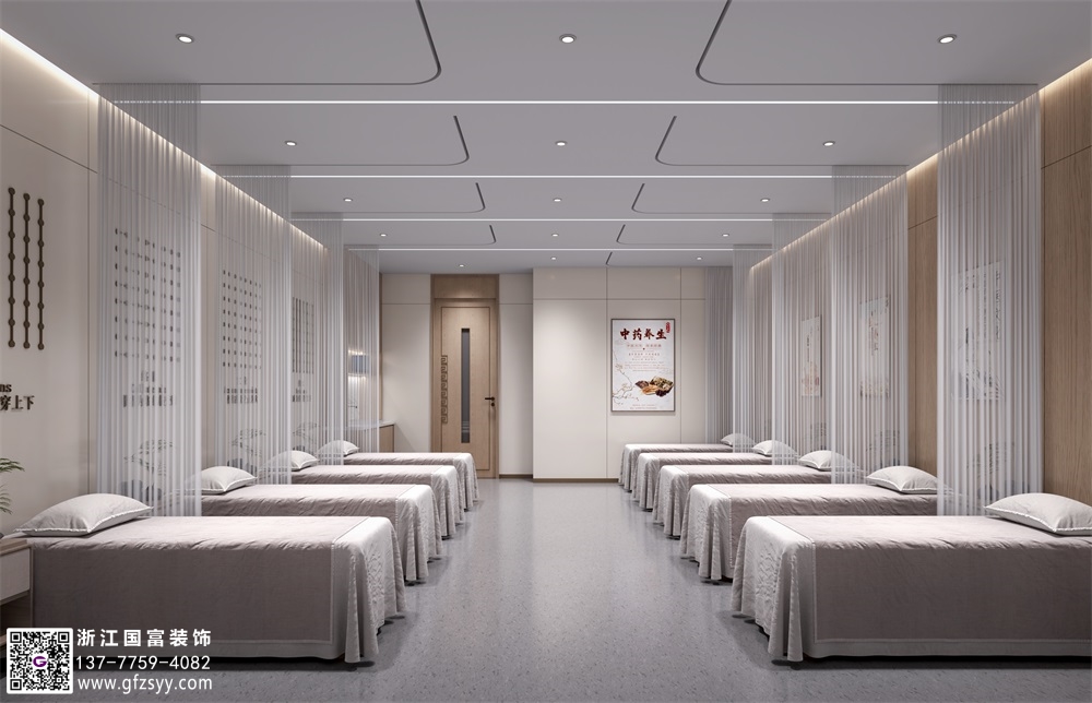 2. **靜態治療區**:針灸、推拿等房間需保證3米×4米的最小單元尺寸,墻體需達到55分貝隔音標準;